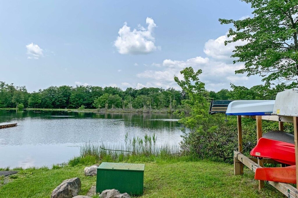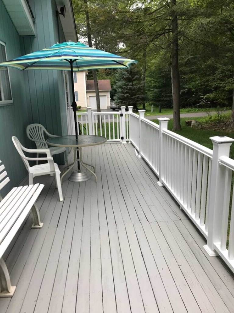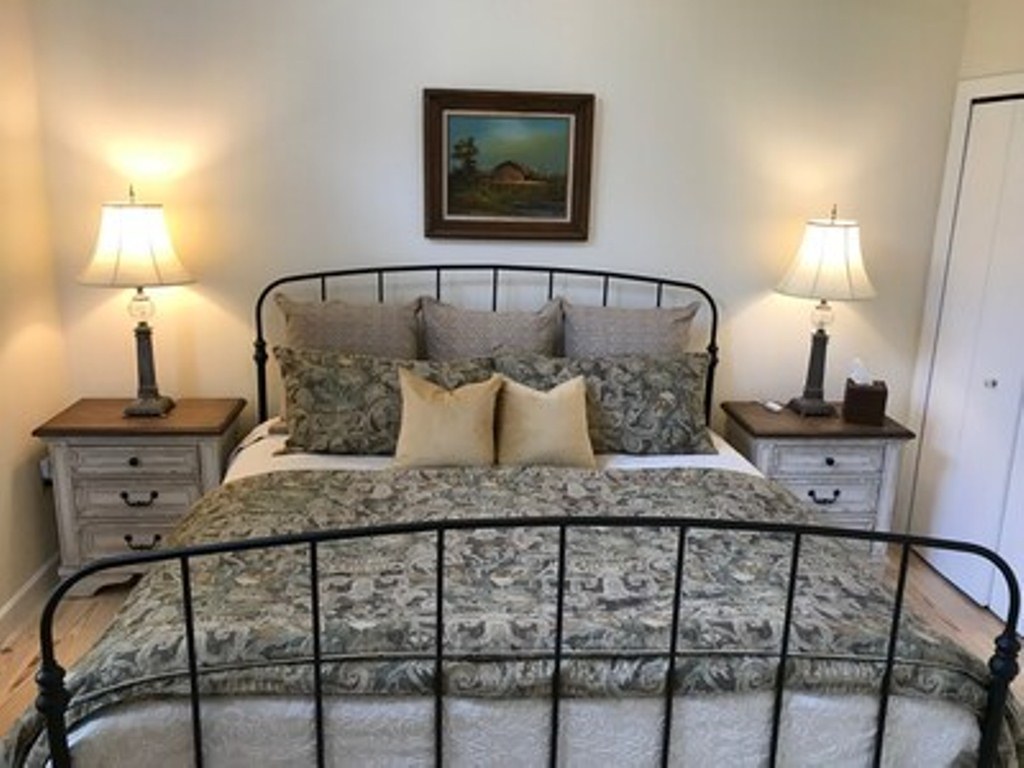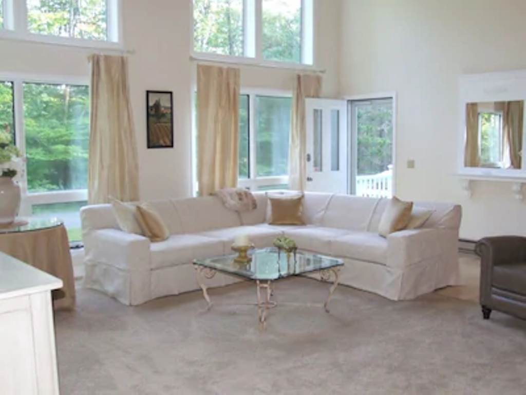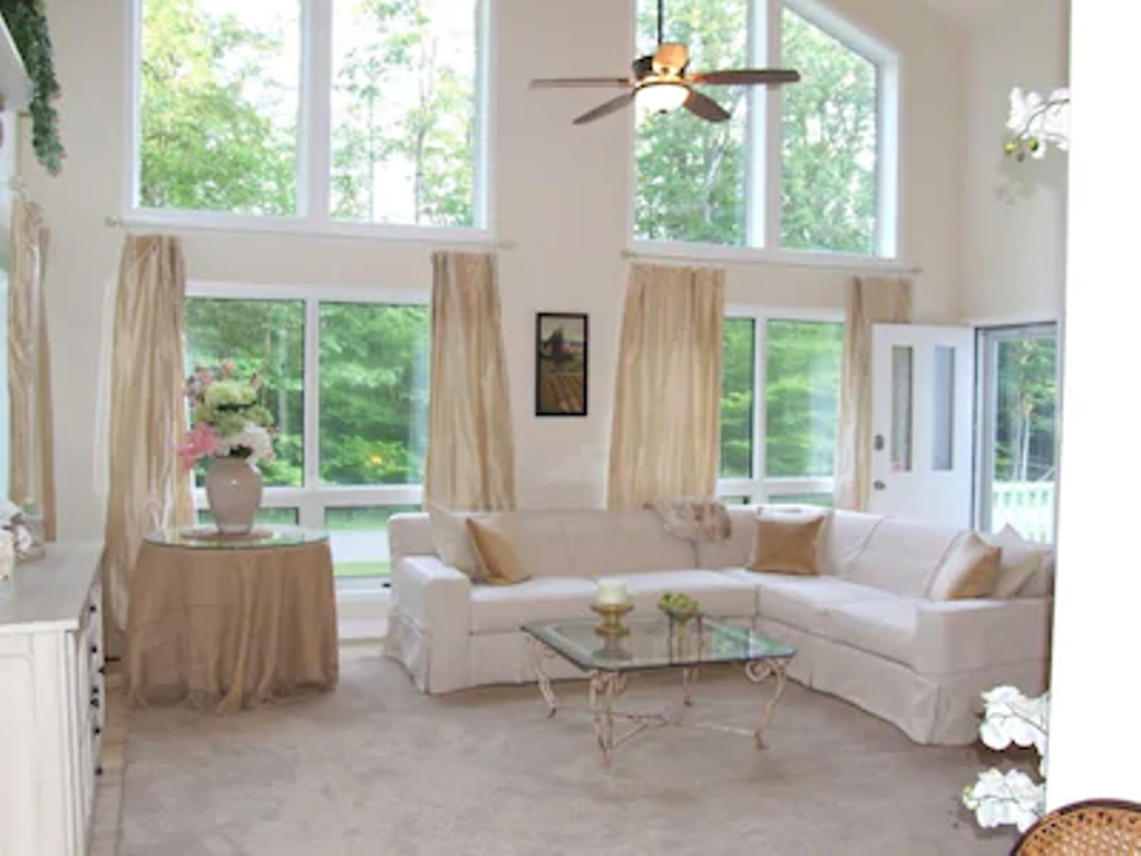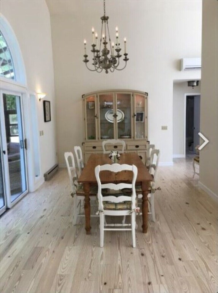 Get away from the city, Escape to the woods for walk and some fresh air! Bring an excellent Book to enjoy in front of the cozy Fireplace. The Great Room has high ceilings with lots of windows to enjoy the Wooded Views. The Dining Room is spacious with an Antique Pine table , Vintage China Closet & Chandelier. The house has a rustic style with Wide Planked Bleached Pine Flooring with tasteful Comfortable Furnishings.