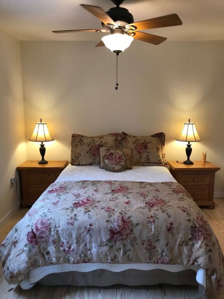 The Master Bedroom En Suite is welcoming with a King size bed. The Master Bathroom has a tumbled marble stall shower & Custom Marble Vanity . The Second Bedroom has a Queen sized bed with a large TV . The 3rd Bedroom has a Queen Bed.